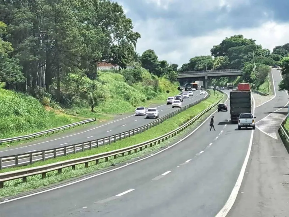Sem passarela, moradores se arriscam ao atravessar diariamente a rodovia entre os bairros Alto Cafezal e Argolo Ferrão